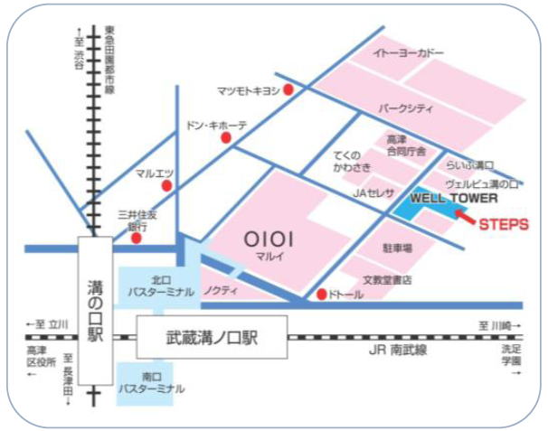 ACCESS 〒213−0011 川崎市 高津区 久本3−2−1 ウエルタワー 東急線「溝の口駅」正面口出口、JR南武線「武蔵溝ノ口駅」4分 JAセレサの向かい側、「ウェルタワー」1階です。 入口を入って一番奥の左側がスタジオです。 TEL&FAX 044−572−6700 ※留守番電話の場合、 恐れ入りますが連絡先とご用件を 残して頂けましたら、折り返しご連絡させて頂きます。